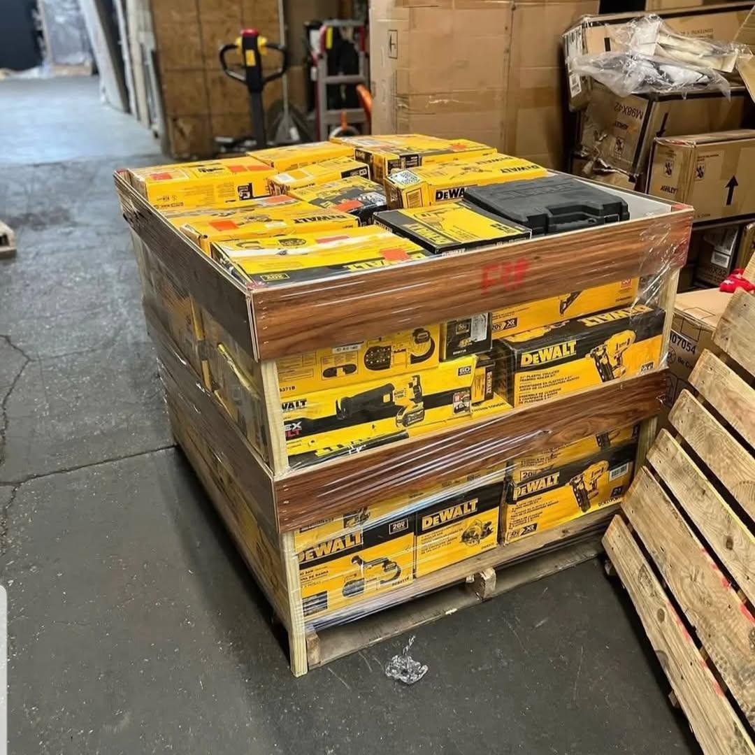 Huge Dewalt tool pallet! Packed with 60-65 pieces, including drills, impact drivers, circular saws, grinders, and hand tools like wrenches and pliers. Perfect for contractors and pros. Top-quality Dewalt gear at a great price!